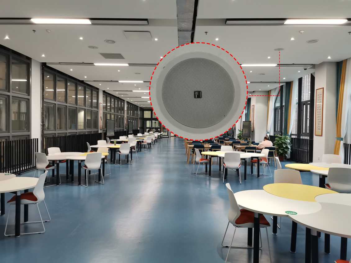 辅助音箱选用CX-8.5吸顶音箱,用于背景音乐和语音播放,适用于会议室、西餐厅、图书馆等需要隐藏式安装的语言与音乐扩声场所。