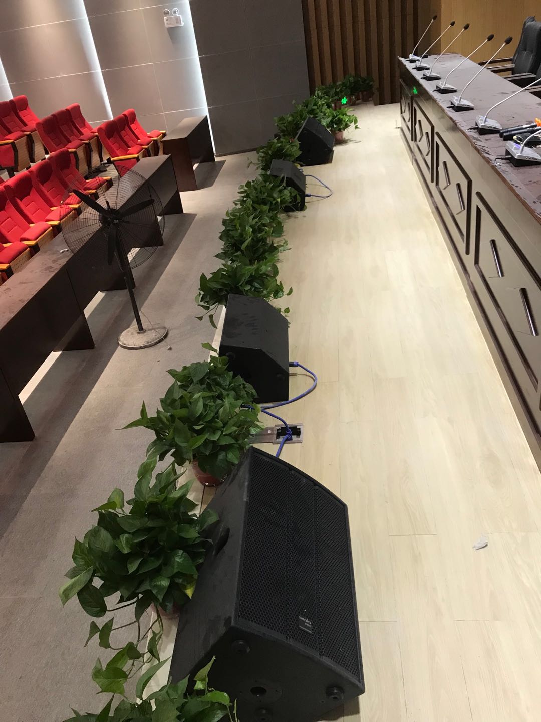 我们可以看到,该报告厅具有场合面积较大,扩声距离较远的特点,SONIC PRO(斯尼克音响)为该报告厅选择了LA线阵列音箱组、SUB超重低音音箱以及K系列全频音箱,可实现中远距离下的扩声,使与会人员能清晰地感受到声源的真实存在,减少因声音过小而无法听清的情况,实现了扩声面广、声音清晰明亮的效果。