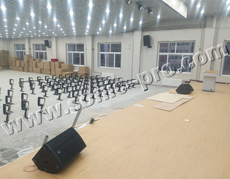 江苏音箱作为主扩音箱,吊挂在舞台前两侧