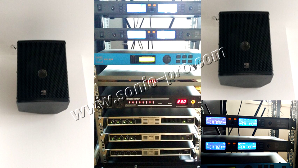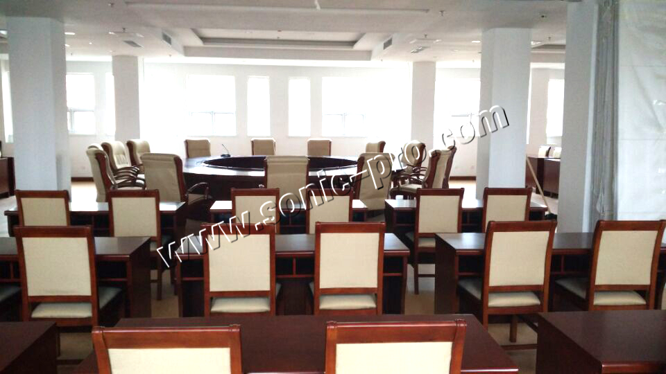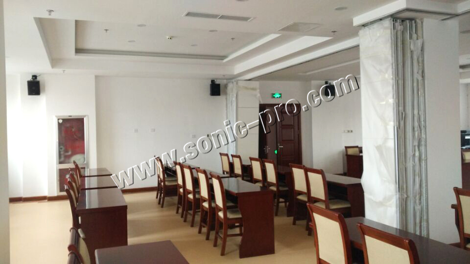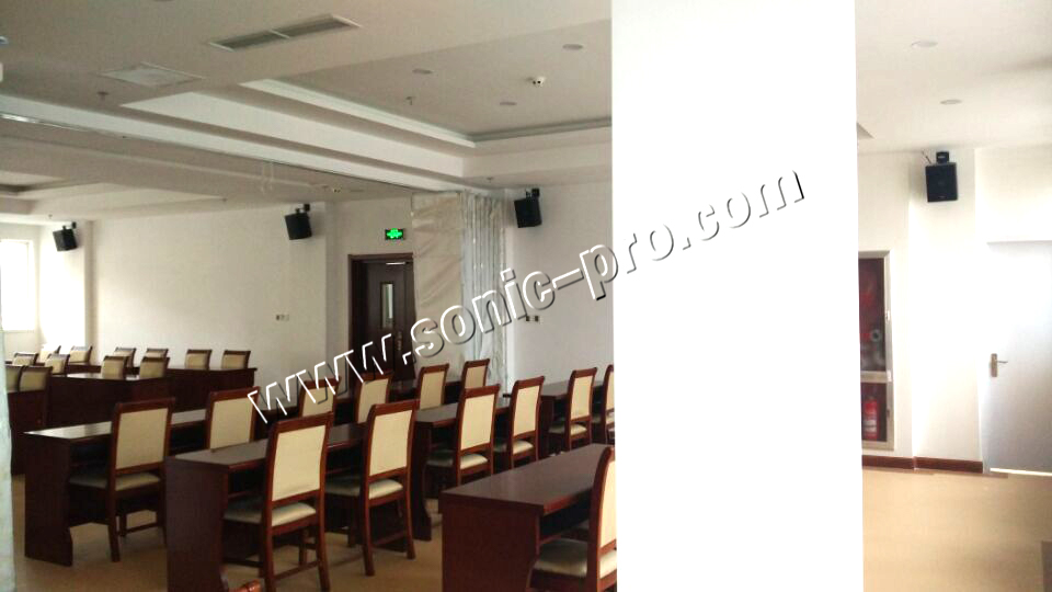 单位内部的数字会议室扩声系统采用德国SONIC-PRO音响产品,为满足会议室独特的扩声要求,江苏音箱采用同轴点声源的TZ系列音箱12只,