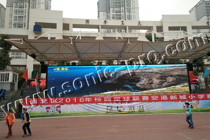 为满足重庆市渝北区空港新城小学扩声要求,SONIC PRO音响特为其量身定制8只二分频有源线性阵列全频