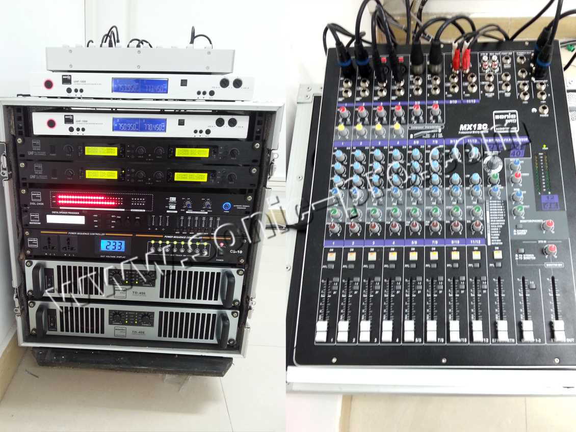 江苏调音台采用内置DSP 24Bit高精度数字效果的MX系列(MX12C),为会议室的音响系统提供了高品质的音频控制。