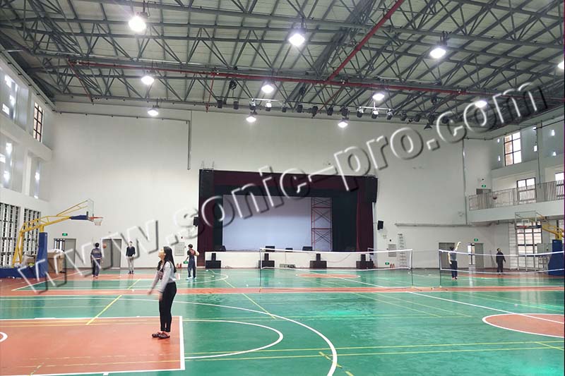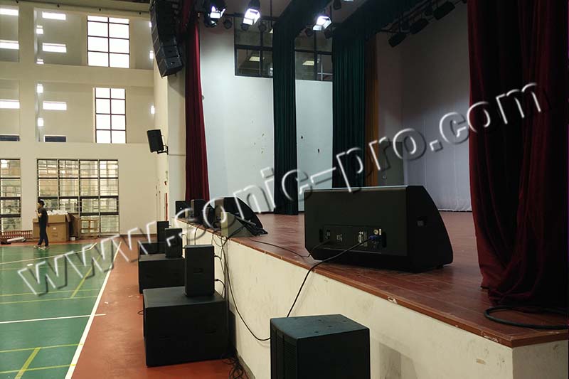 经过专家组的多方评估,最终选用SONIC PRO音响产品作为该校风雨球馆扩声系统,为该校风雨球馆提供扩声服务。SONIC PRO音响为满足该项目要求,特为其量身定制扩声系统:有源双十寸带DSP处理线性阵列音箱,有源带DSP处理双18低音炮、15寸有源带DSP处理舞台返听音箱。再搭配: