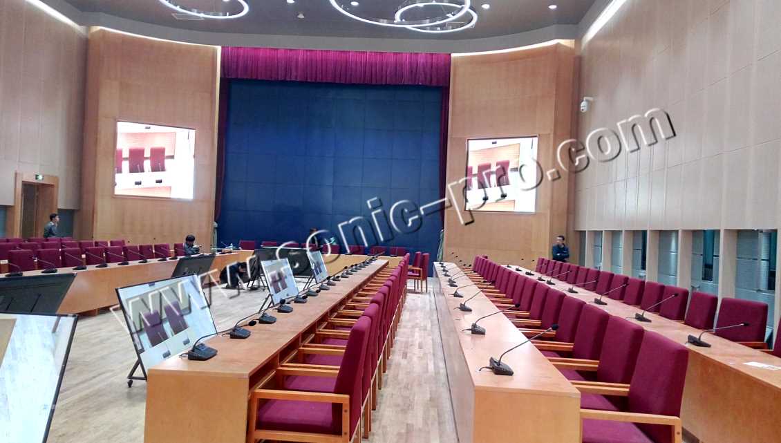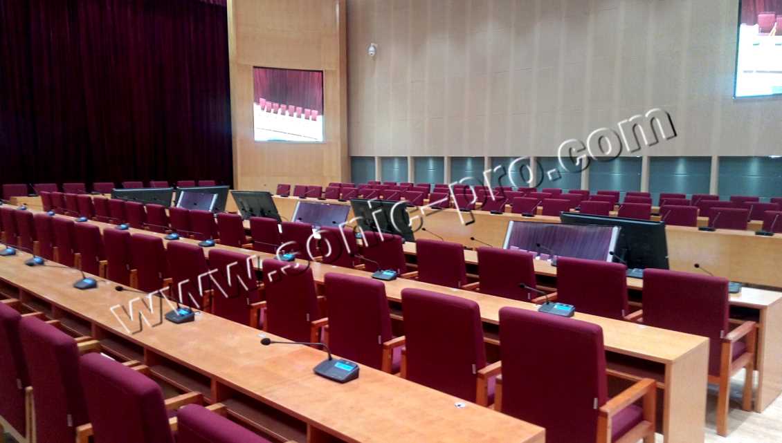 手拉手江苏会议系统采用带摄像跟踪、讨论功能的TL3000,和高清摄像球(TL-S02)实现视像跟踪功能,使用到一百多只桌面式江苏话筒,通过技术处理,很好的解决了话筒供电及啸叫问题。