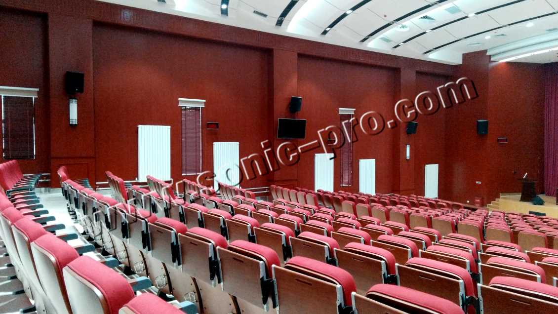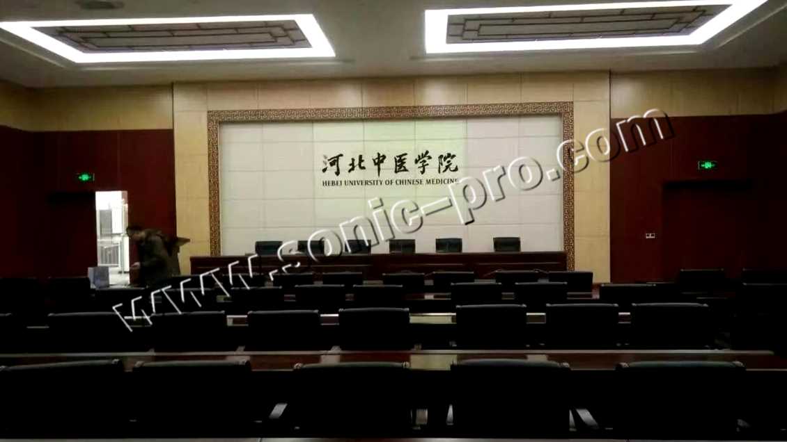 其中河北中医学院401人报告厅1间,94人报告厅1间,154人报告厅1间,220人教室1间,220人录播室1间,120人教室23间,120人录播室1间的扩声系统全部采用SONIC PRO音响产品。