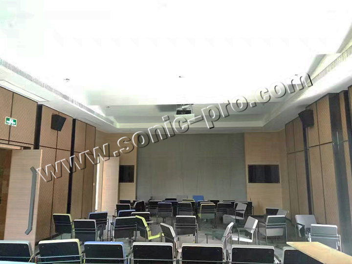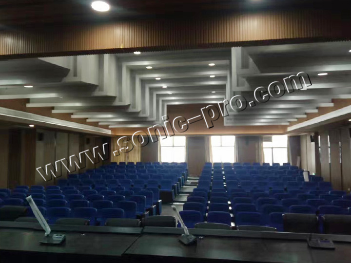 (I)报告厅部分(5.1声道)主扩声音箱、中置采用FTH-803线性音柱加持,小箱体、大功率,适合隐藏式安装;超低部分采用1只双12寸低音FSUB-212,