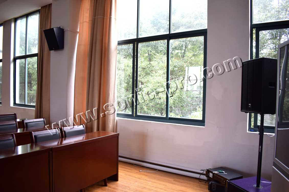 江苏TH-803线性音柱,该音柱采用欧洲原装定制小口径喇叭单元,铝合金开模的精致设计,很好的契合了该会议室特殊的安装需求。