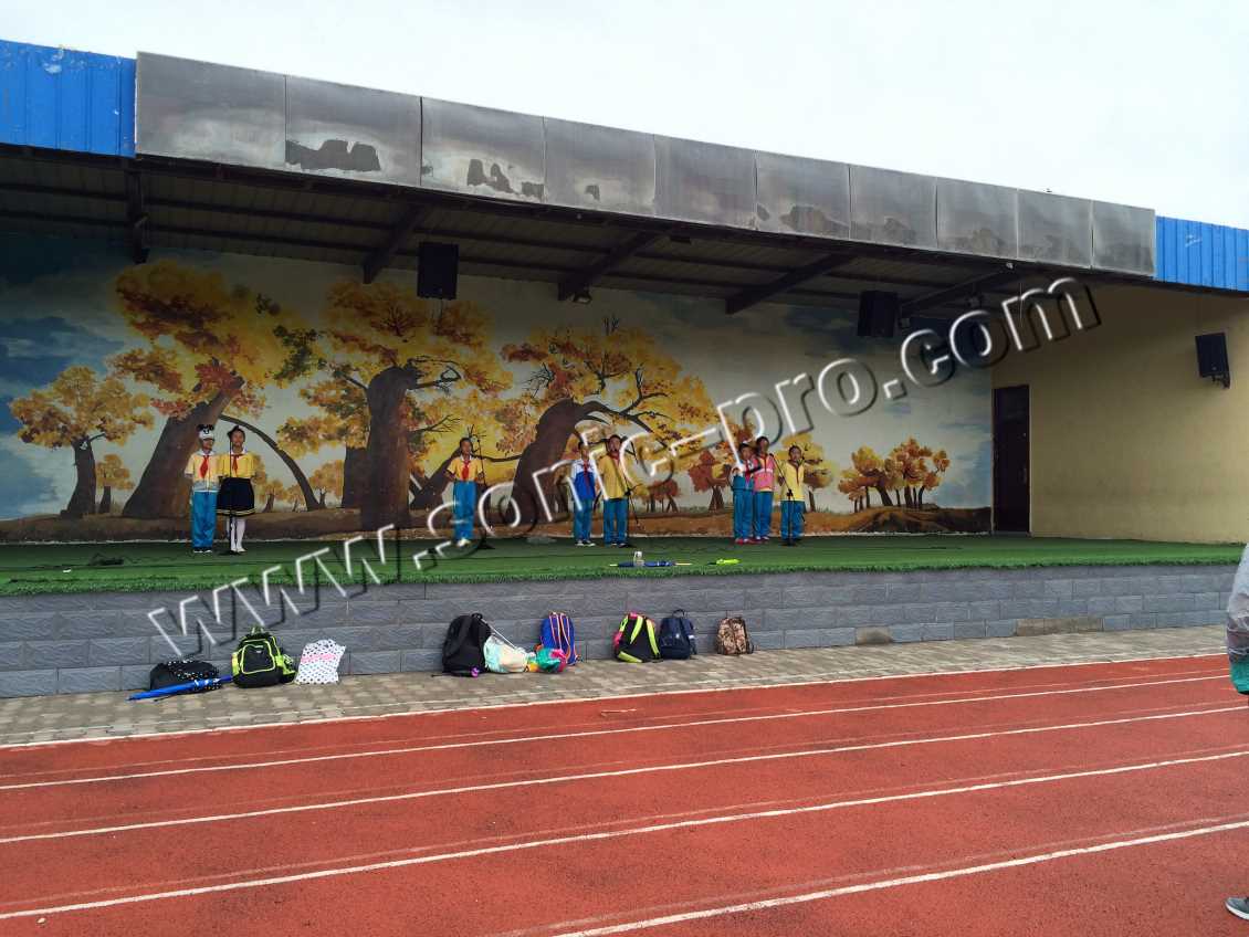 阿拉善六小校方表示操场的音箱扩声优于期待效果;