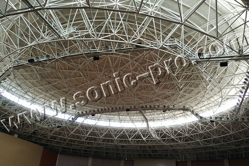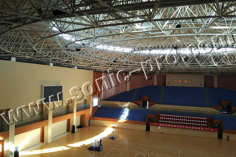 此次体育馆扩声系统全部采用SONIC PRO音响产品,通过EASE4.3专业软件进行声场分析,科学合理固定安装22只定制外置两分频中远程音箱(TH-15D),配套相对应的
