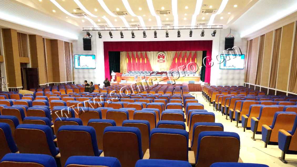 项目的应用场所是一个县政府的礼堂,面积大概为400平方米,主要用于传达上级指示以及学习重要会议的精神,极少涉及到表演需求,因此满足主要的大型会议扩声兼顾表演扩声需求即可。