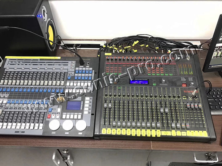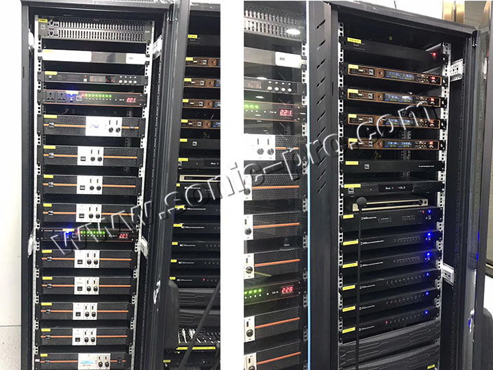 江苏调音台GL-32,加上数字音频矩阵处理器MATRIX808,以及数字前级处理器KV-8800,音频隔离器GL-202,均衡器AC03,电源时序器CS-16。