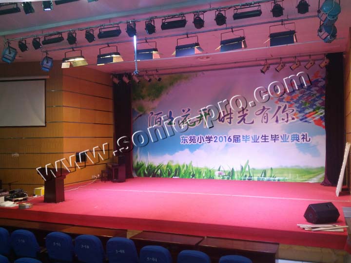 再加上24路数字江苏调音台(MATRIX24.8)及解决无线控制的音频矩阵处理器(MATRIX 808),整套音响设备完美助阵金华东苑小学各项报告会议及演出表演等多功能使用要求,获得学校领导和师生的一致好评。
