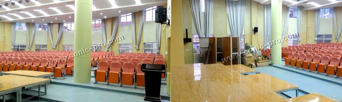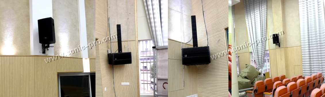 主扩音箱采用TH系列2只8单元3寸线阵音柱(TH-803)与2只单12寸超低音音箱(TH-12S)的组合搭配使用,TH系列音箱是SONIC PRO(斯尼克)音响全新打造的线性音柱扩声音箱,让扩声变得简单,让声音变得自然。TH系列音柱采用欧洲原装定制小口径喇叭单元,保障音质;小箱体、大功率、高灵敏度;箱体结构采用铝合金开模设计,具有丰富的安装方式以及科学的组装细节。音频处理部分采用24路