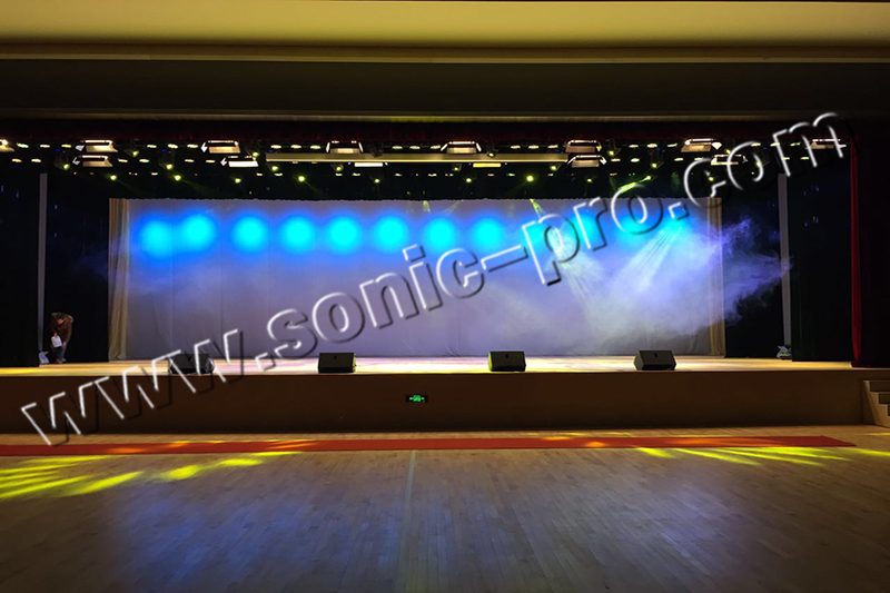 此套扩声系统中主扩音箱采用LA系列线性阵列音箱(2只LA-118、8只LA-210),该系列音箱具有较大的动态容量,能提供干净、连续、精确的高品质声音;应用相位校正以及专利线性号角技术,能忠实还原规定范围内频谱信号并且具有方便简捷的吊挂方式,安装简易。中后场补声及中置音箱采用TZ系列同轴音箱(TZ-12、TZ-15),搭配舞台返听及超低音箱(K-12、SUB-218)。