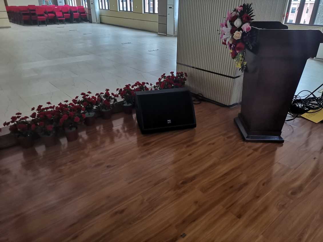 报告厅特点:面积较大,需要实现远距离,大声压的扩声